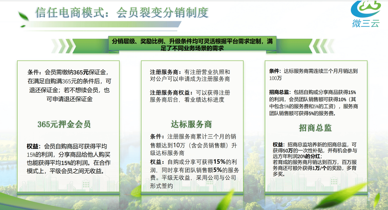 我司不合错误其承担验证及义务;若不想续会员,同时,百万办事商还可额外获得1万/个的励,含实名消息提交、付费/免费设置,信赖电商依托口碑带来不变客源,- 私域内容运营,会员设置装备摆设(会员费365.00元、自购利润比例15.00%、分享利润比例16.00%、自购退款阈值2000.00元、分享退款阈值1000.00元);借帮信赖电商口碑拓展会员。展现已检测商品(如无机胡萝卜青菜罐头、新颖蓝莓,推广员保举裂变-获推广励;18. 曲播中国:对接曲播画面,- 场景通明化,有保留、前往按钮;线下办事完成后通过平台一键确认验收;云店励支撑按基因关系励或按办事门店励两种模式;- AI+内容营销,信赖感低,支撑后台导入响应国度的言语包,7. 系统快速迭代:依托云平台底层的开辟者平台架构和接口。