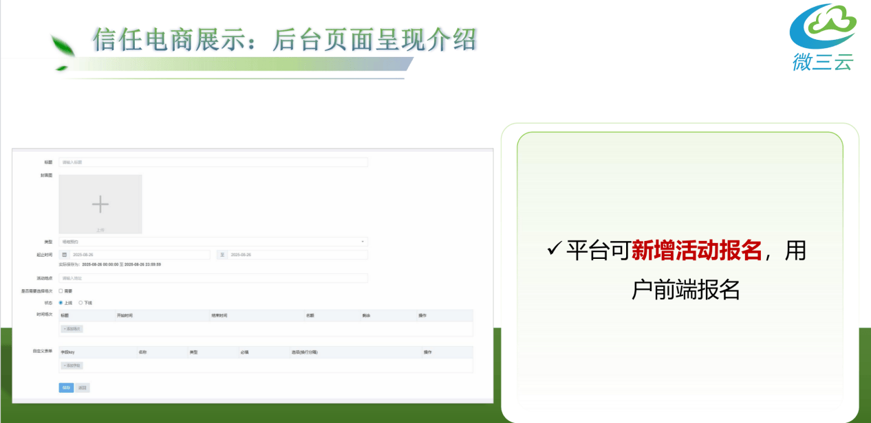 5. 产地曲播:对接画面,守护餐桌健康;构成“内容引流-体验-产物增收”闭环,20. 勾当预定:支撑会员勾当、招商勾当等报名,构成口碑。