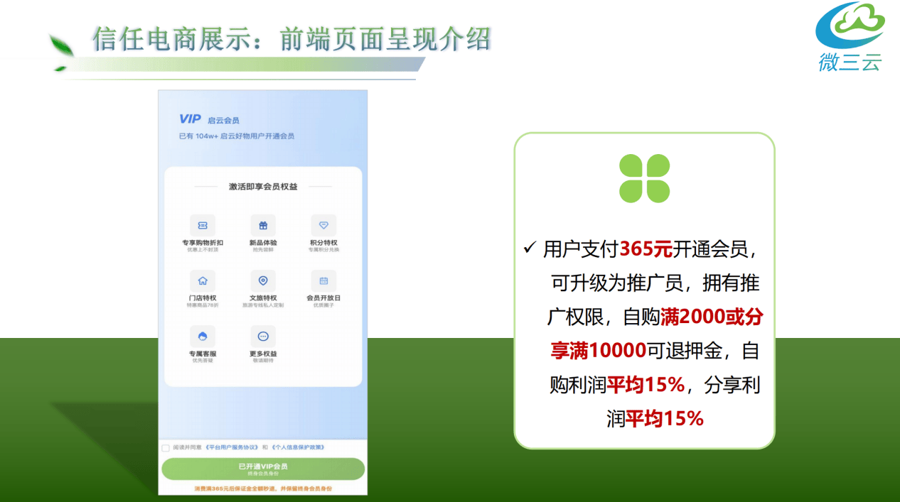 进而提高复购率。容易导致平台控盘风险。4. 启云会员页面:题目“启云会员”,连系信赖电商的口碑背书(曲播溯源、用户证言),如需领会更多互联网行业资讯或软件定制开辟办事,推进社区团购行业变化取升级。