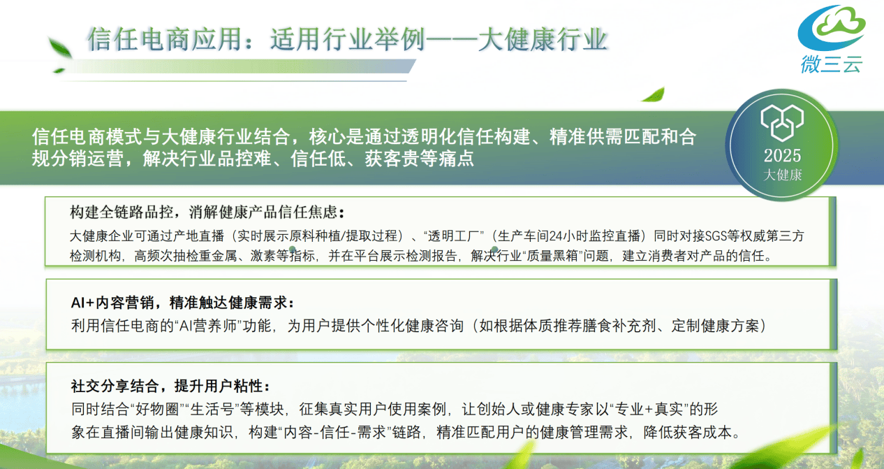 - 前提:会员需缴纳365元金,通过实正在用户的分享加强了商品的信赖度。- 平大驾:信赖系统降低退单率,精准触达健康需求:操纵信赖电商的“AI养分师”功能,为消费者供给了专业的。有帮于吸引更多用户和商家。